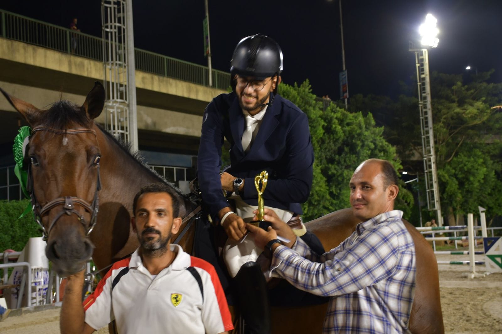 بحضور الدكتور حسن مصطفي رئيس الاتحاد الدولي لليد، والمهندس هشام حطب رئيس اللجنة الأوليمبية المصرية ورئيس الاتحاد المصري للفروسية، اللواء سعد الدين مصطفي مدير إدارة المدرعات ورئيس نادي فروسية القوات المسلحة، رامي إسكندر رئيس نادي فروسية الجزيرة، والفنان أحمد السقا، ولفيف من رؤساء أندية الفروسية والشخصيات العامة ورواد ومُمثلي هيئات الفروسية ومحبيها.