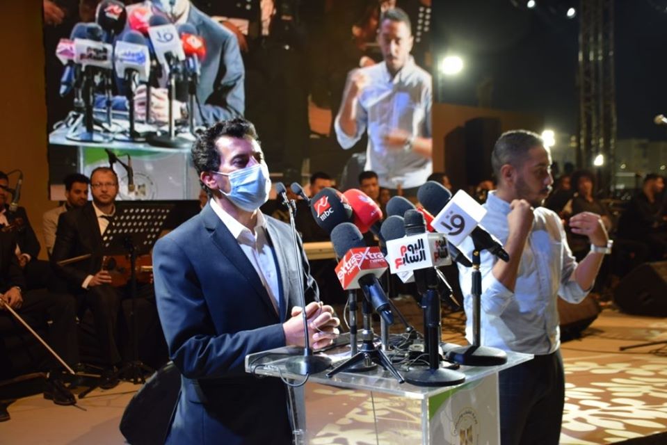 وعلي صعيد الإحتفالية، قدمت أوركسترا وزارة الشباب والرياضة بقيادة المايسترو الدكتور عز الدين طه كوكبة من الفقرات الغنائية، في ظل الإجراءات الاحترازية المتبعة للوقاية من فيروس كورونا المستجد.
