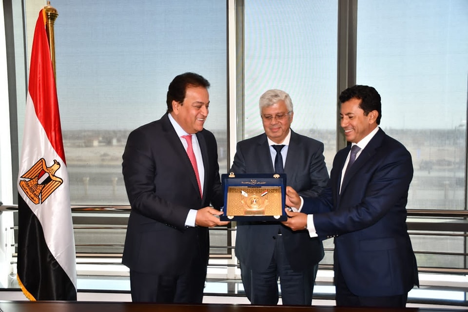 التقي الدكتور أشرف صبحي وزير الشباب والرياضة- اليوم- مجلس إدارة الإتحاد الرياضي للجامعات، بحضور الدكتور محمد أيمن عاشور وزير التعليم العالي والبحث العلمي، رئيس الإتحاد الرياضي المصري للجامعات، والدكتور خالد عبد الغفار وزير الصحة والسكان، الدكتور صبحى حسانين نائب رئيس الاتحاد الرياضي للجامعات ولفيف من أعضاء الاتحاد، وذلك بمقر مجلس الوزراء بمدينة العلمين الجديدة.