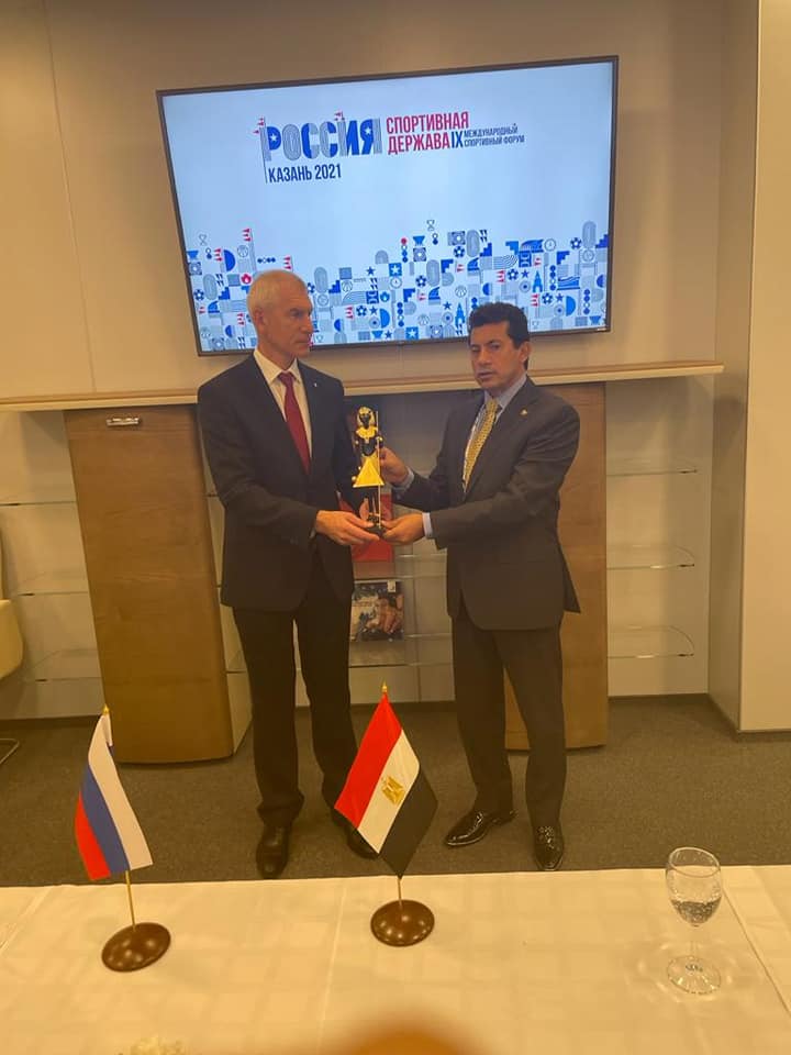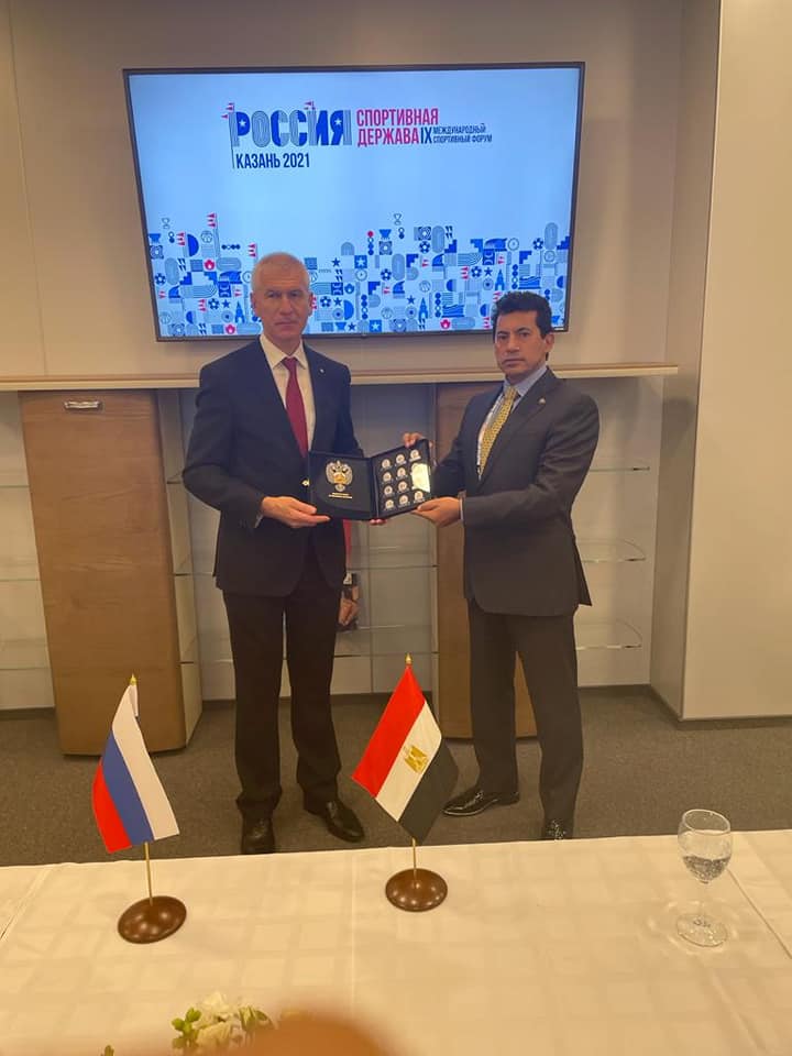 يأتى ذلك على هامش مشاركة وزير الشباب والرياضة، في المنتدى الدولي التاسع “روسيا دولة الرياضة” الذي انطلقت فعالياته أمس وتستمر حتى غدا الجمعة.