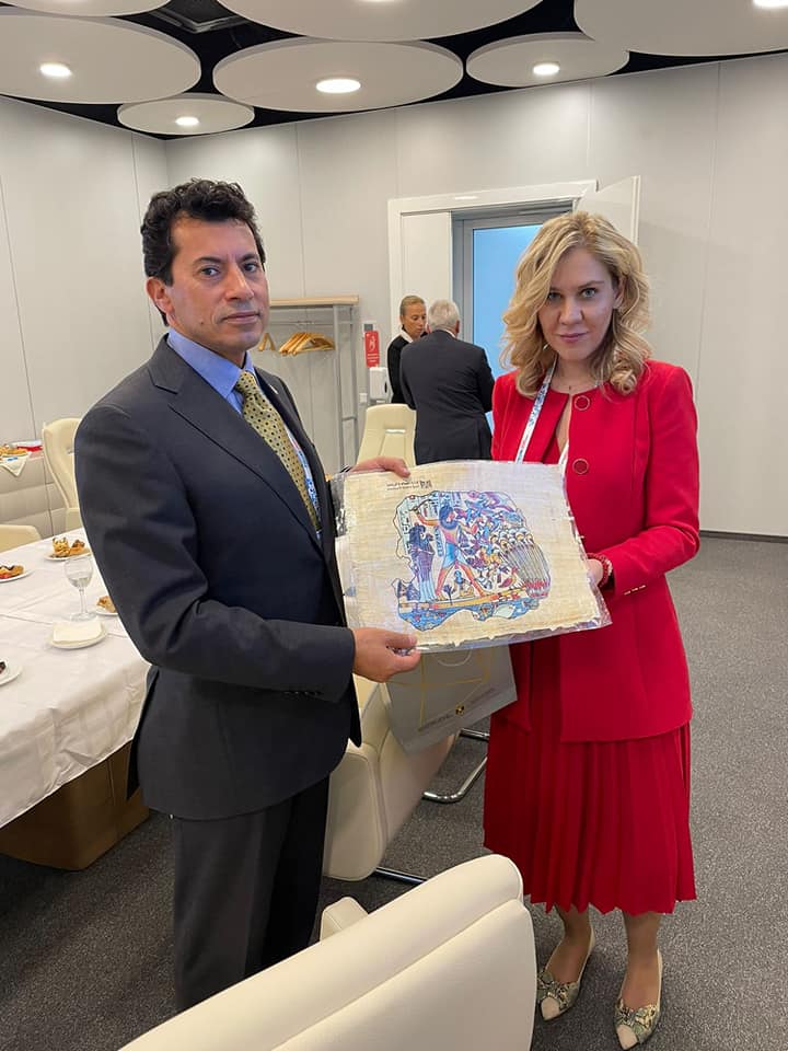 والتقى الدكتور أشرف صبحى على هامش المؤتمر مع وزيرة التعليم والرياضة من دولة مونتينيجروا، حيث جاء اللقاء لبحث سبل التعاون الرياضي والشبابي، وكيفية الاهتمام بالنشء والمواهب، ومناقشة ايضا الموضوعات ذات الاهتمام المشترك في هذا الشأن.