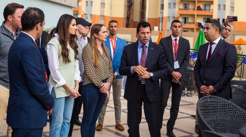 بالصور .. وزير الشباب يستقبل وفد من أعضاء الكونجرس الأمريكي لزيارة المدينة الشبابية الرياضية بالأسمرات