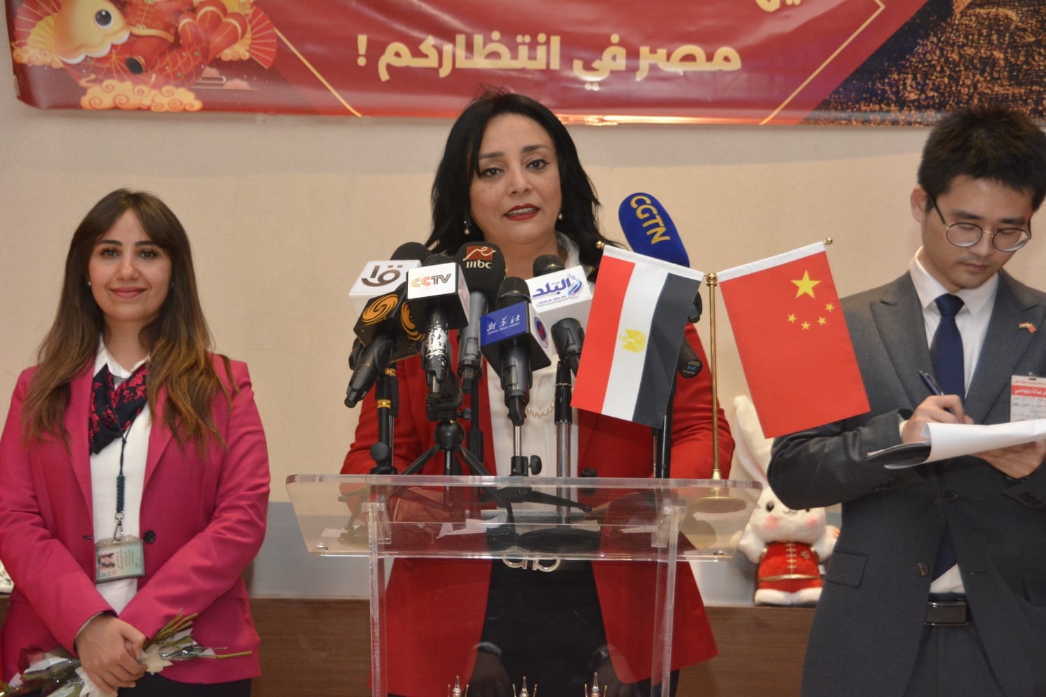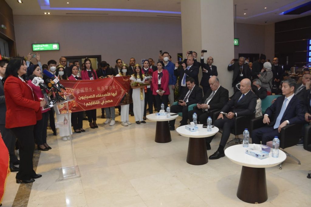 وقد شاركت فى الاحتفالية نيابة عن وزير السياحة و الآثار غادة شلبي نائب الوزير لشئون السياحة وخلال كلمتها في المؤتمر الصحفي حرصت على الترحيب بالوفد الصينى معربة عن تطلعها إلى زيادة أعداد السياح الصينيين، ومؤكدة على أن مصر ترحب بجميع السائحين من مختلف دول العالم وتعمل على تقديم كافة التسهيلات والتيسييرات لهم وتوفير كل سبل الراحة وتأمينهم، وإتاحة الفرصة لهم للاستمتاع بما تحتضنه مصر من آثار نادرة وحضارتها المصرية العريقة، مشيرة الى أن السياحة تمثل قطاعاً هاما للتعاون بين الجانبين لافتة إلى أن مصر ترحب بالسياح الصينيين في ضوء العلاقات العميقة التي تربط بين البلدين على مختلف الأصعدة، موضحة أن وزارة السياحة تحرص على تقديم البرامج السياحية المتميزة للسائح الصيني مؤكدة على الاهتمام بصحة وسلامة السائحين الصينيين مؤكدة على أنه تم تطعيم كافة العاملين في كافة المنشآت السياحية والفندقية المصرية، وكذلك تدريب العاملين في هذه المنشآت على أعلى معايير الصحة والسلامة الدولية، كما دعت شلبي الوفد الصيني إلى الاستمتاع بالمعالم السياحية المصرية وانتهاز الفرصة لدعوة الشركات ومنظمى البرامج السياحية والرحلات الجوية للمشاركة مع الجانب المصري لتقديم البرامج المتنوعة والمتميزة للسياح الصينيين ومشاركة أصدقائهم وأسرهم والقيام بمزيد من الزيارات للاستمتاع بالمقاصد السياحية المصرية.