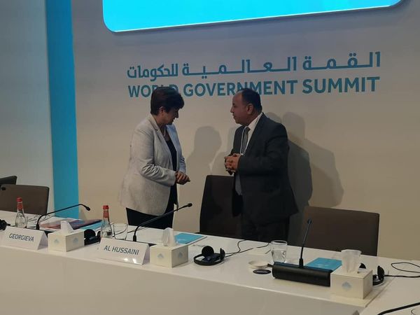 بالصور..وزير المالية يلتقي مع مدير عام صندوق النقد الدولي بالقمة العالمية للحكومات بدبي