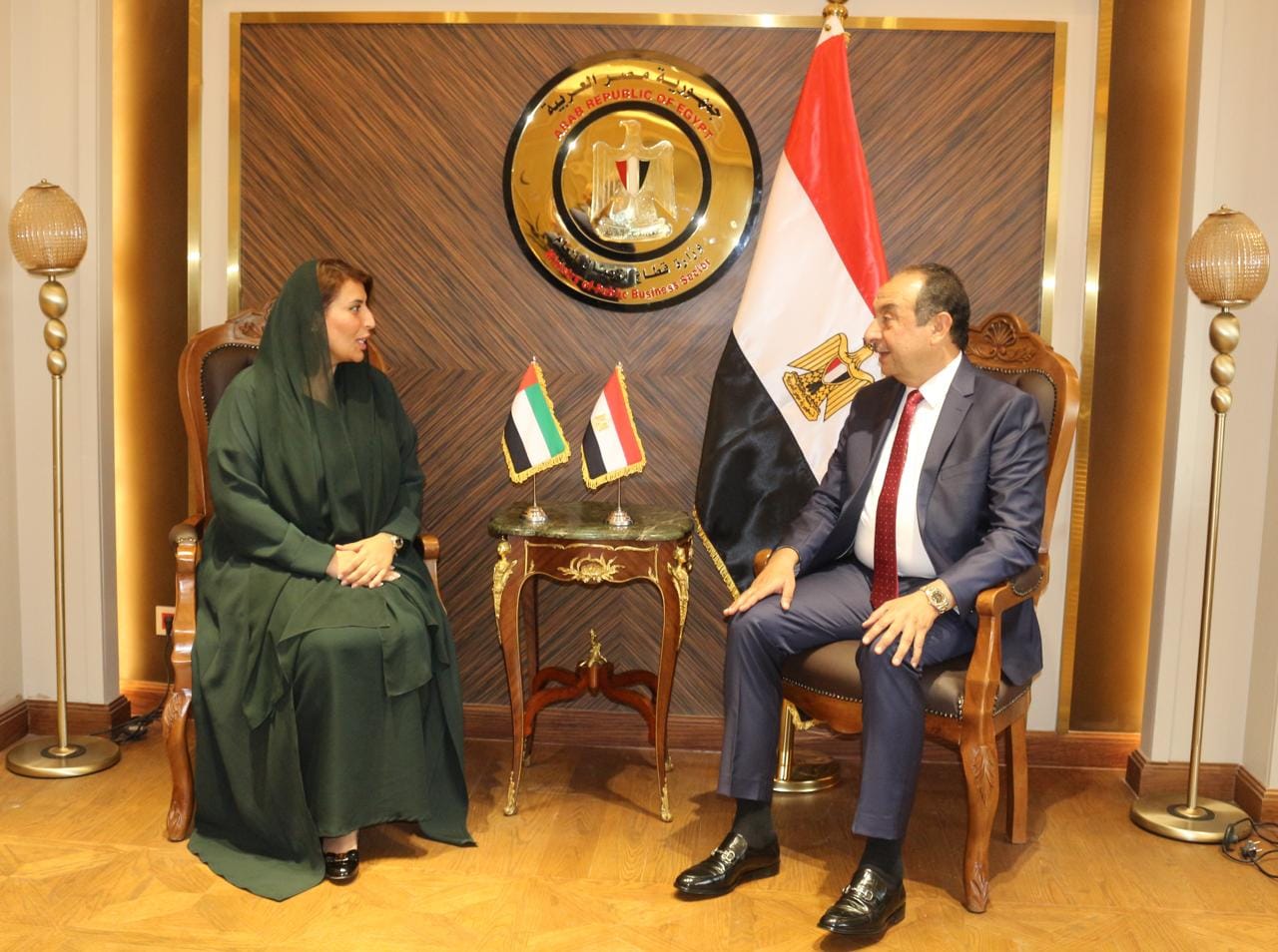 وتم خلال اللقاء التباحث حول فرص تعزيز التعاون المشترك، وذلك بحضور سامي النقبي رئيس قسم الشؤون الاقتصادية بسفارة الإمارات بالقاهرة، وعدد من قيادات الوزارة.