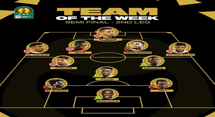 تواجد ثلاثي النادي الأهلي حسين الشحات وبيرسي تاو ومحمد عبد المنعم، في التشكيل المثالي لإياب نصف نهائي دوري أبطال أفريقيا.