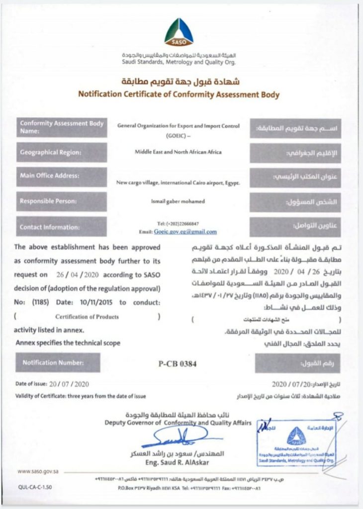 تسجيل هيئة الرقابة على الصادرات و الواردات ضمن جهات تقويم المطابقة العالمية ببرنامج سابر السعودى
