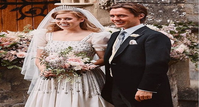 إستعارت الأميرة بياتريس فستان زفافها من جدتها إليزابيت الثانية ملكة بريطانيا والتى ارتدته لأول مرة منذ 58 عاماً ليظهر من جديد هذا العام كثوب زفاف حفيدتها.