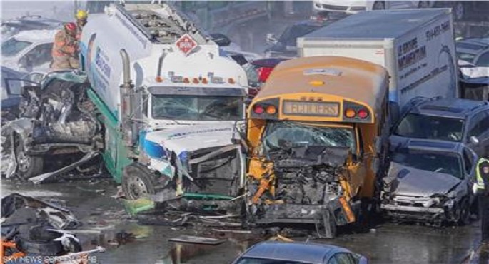 شهدت مدينة مونتريال الكندية حادث سير مروع تسبب إصابة نحو 70 شخصا، عقب تصادم أكثر من 200 مركبة، في أحد شوارع ضواحي المدينة.