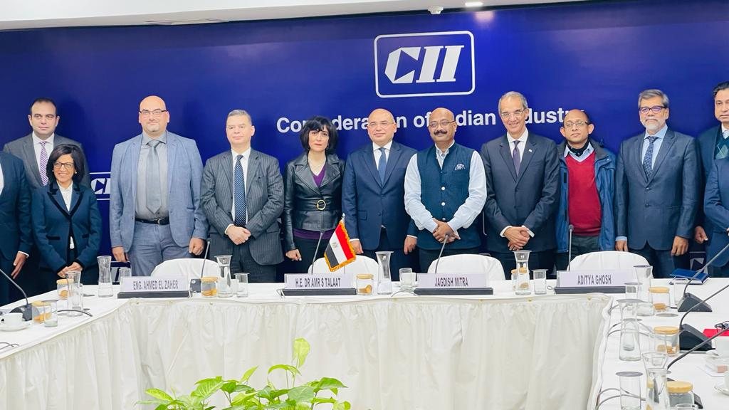 عقد اليوم الدكتور/ عمرو طلعت وزير الاتصالات وتكنولوجيا المعلومات اجتماعا مع عدد من كبرى الشركات من أعضاء اتحاد الصناعة الهندى CII المعنى بمجال خدمات واستشارات تكنولوجيا المعلومات؛ وذلك فى العاصمة الهندية نيودلهى؛ حيث تناول الاجتماع استعراض الفرص الاستثمارية التى يزخر بها قطاع الاتصالات وتكنولوجيا المعلومات المصرى والمزايا التنافسية التى يحظى بها، وكذلك مناقشة سبل جذب الاستثمارات الهندية إلى القطاع، وبحث إقامة شراكات قوية بين الشركات المصرية العاملة فى هذا القطاع مع نظيرتها من الشركات الهندية.