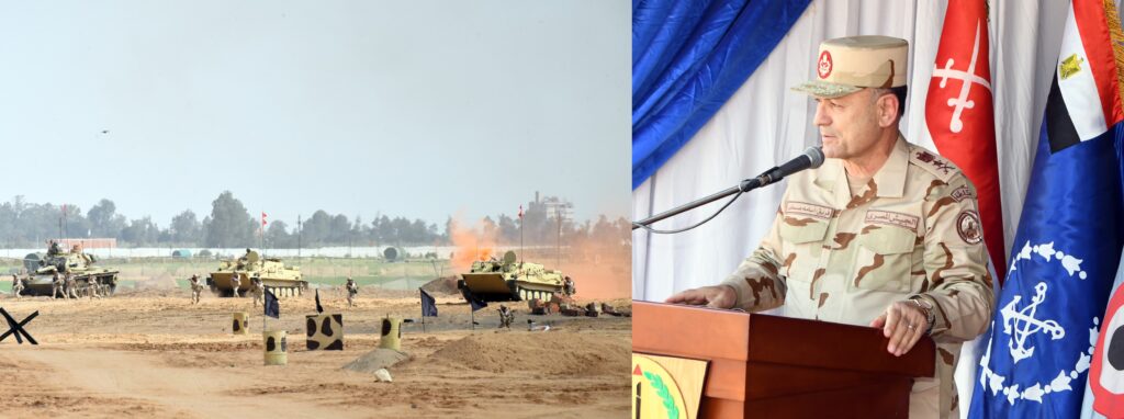 شهد الفريق أسامة عسكر رئيس أركان حرب القوات المسلحة بياناً عملياً للتكتيكات الصغرى والمهارة فى الميدان لإحدى تشكيلات الجيش الثانى الميدانى ، وذلك فى إطار خطة التدريب القتالى لتشكيلات ووحدات القوات المسلحة.