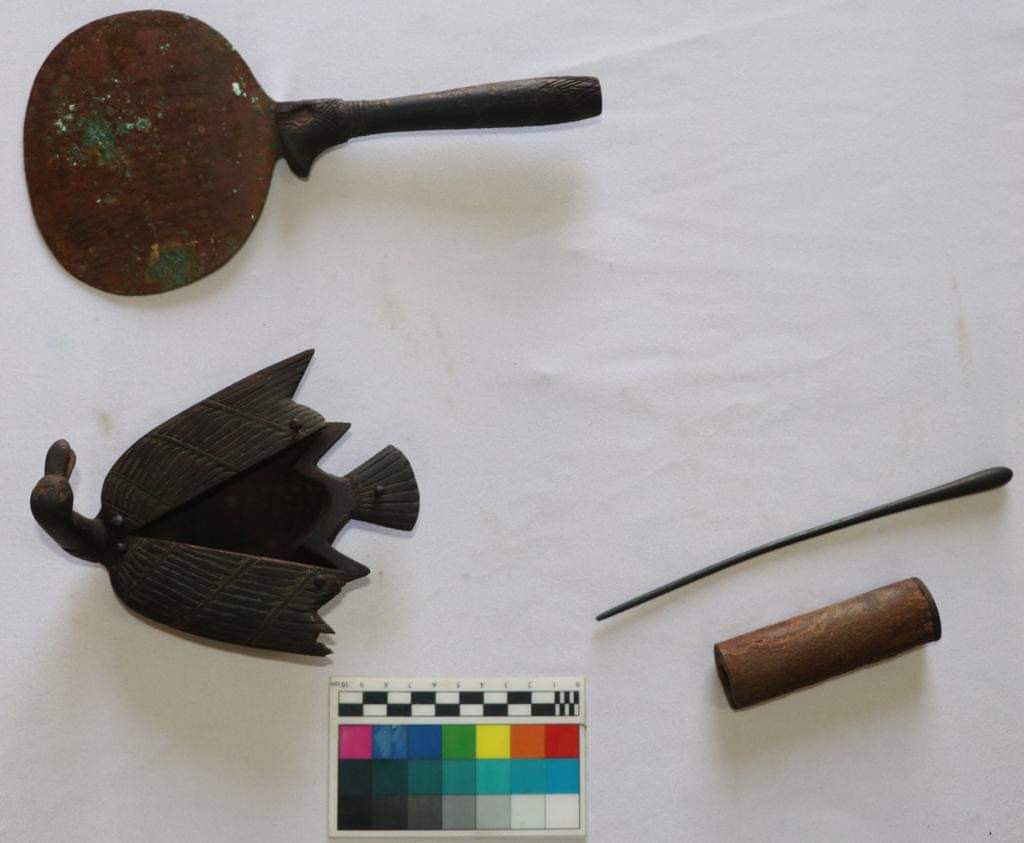 وتابع أنه تم العثور على العديد من القطع الأثرية التي تمثل طيور مثل أوزه، وبلطة من البرونز تدل على أن صاحبها كان أحد قادة الجيش في عصر الدولة الحديثة والعديد من اللوحات المنقوشة عليها مناظر المتوفى وزوجته وكتابات الهيروغليفية؛ من أجملها لوحة من الحجر الجيري في حالة جيدة من الحفظ ، مصور عليها منظر متوفى يدعى (خو-بتاح) وزوجته تدعى (موت-ام-ويا).