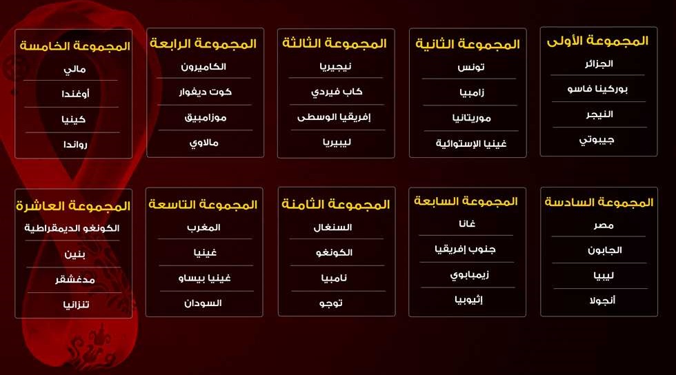ويتنافس منتخبا الكاميرون وكوت ديفوار في المجموعة الرابعة، فيما يتصارع منتخبا غانا وجنوب إفريقيا في المجموعة السابعة.