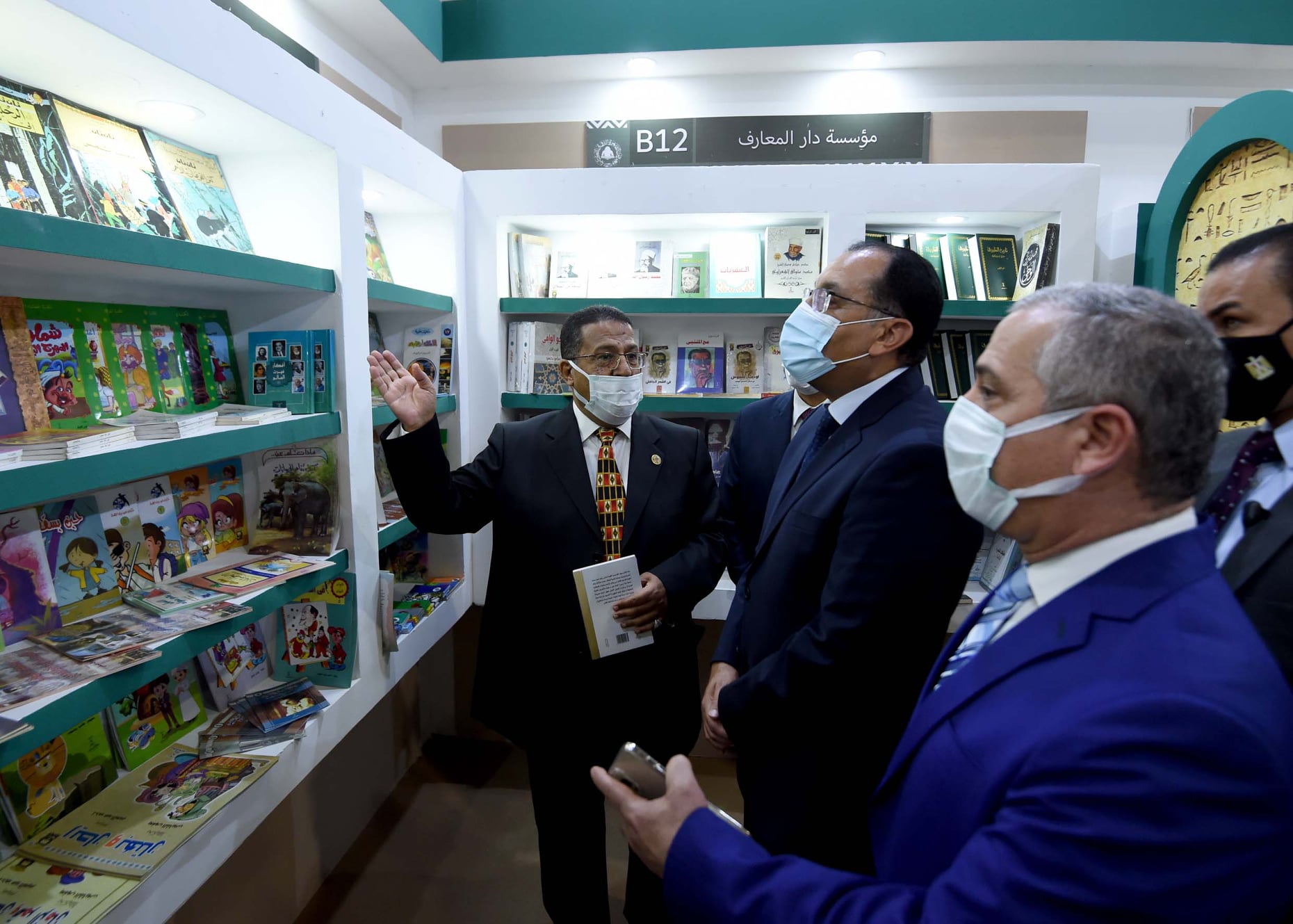وخلال تجوله في أرجاء معرض الكتاب، استمع الدكتور مصطفى مدبولي إلى شرح من وزيرة الثقافة حول فعاليات الدورة الحالية للمعرض، التي تنعقد في ظل ظروف استثنائية بسبب أزمة جائحة كورونا؛ حيث أشارت الوزيرة إلى أن هذه الدورة ستشهد مشاركة 1218 ناشرًا مصرياً وعربياً وأجنبياً من 25 دولة، كما تتضمن إطلاق مبادرة “ثقافتك كتابك”، إلى جانب إطلاق المنصة الإلكترونية لأول مرة، وبها أول معرض كتاب افتراضي موازٍ بتقنية “D 3″، كما سيتم إطلاق جميع الفعاليات والأنشطة افتراضياً على المنصة حفاظًاً على السلامة والصحة العامة للجمهور.