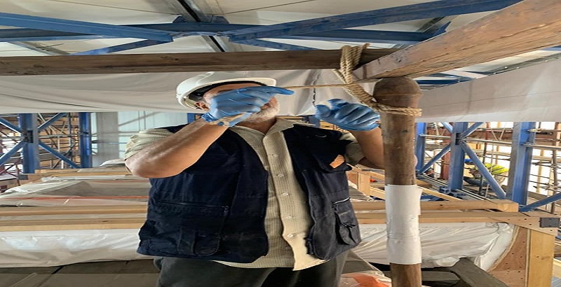 وأضاف أنه تم أيضا تنظيف المركب تنظيفاً ميكانيكياً وتعقيمها بالكامل خلال جميع مراحل العمل، بالإضافة إلى القيام بتقوية الأجزاء الضعيفة بجسم المركب وحقن وتدعيم بعض الشروخ وتغليف بعض القطع التي تم فكها مثل المجاديف، وذلك باستخدام الأساليب العلمية المتبعة في نقل وتغليف الآثار وتأمينها داخل الصناديق الخشبية التي تم إعدادها مسبقاً خصيصاً لها.