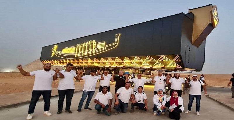 وأضاف أن هناك فريقا متميزا من مرممي مركز ترميم المتحف المصري الكبير والمجلس الأعلى للآثار قاموا بعمل مسح بأشعة الليزر للمركب؛ لتوثيق أدق تفاصيلها وتغليفها استعداداً للنقل، وبالتوازي مع ذلك، تم تصميم وتصنيع الهيكل المعدني حول المركب، وإقامة شدادات وسقالات معدنية خارج وداخل المبنى لتدعيمه.