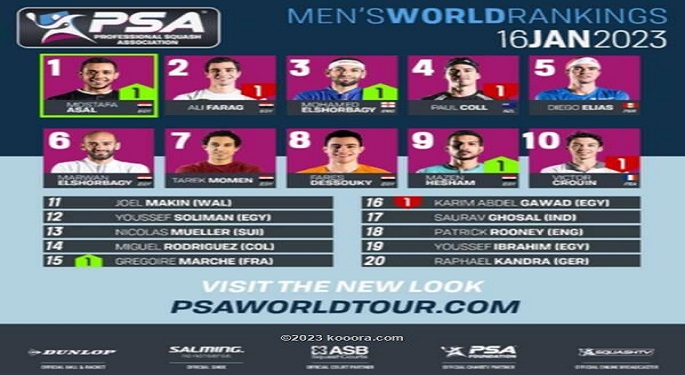 مصطفى عسل يتصدر التصنيف العالمي للإسكواش لأول مرة