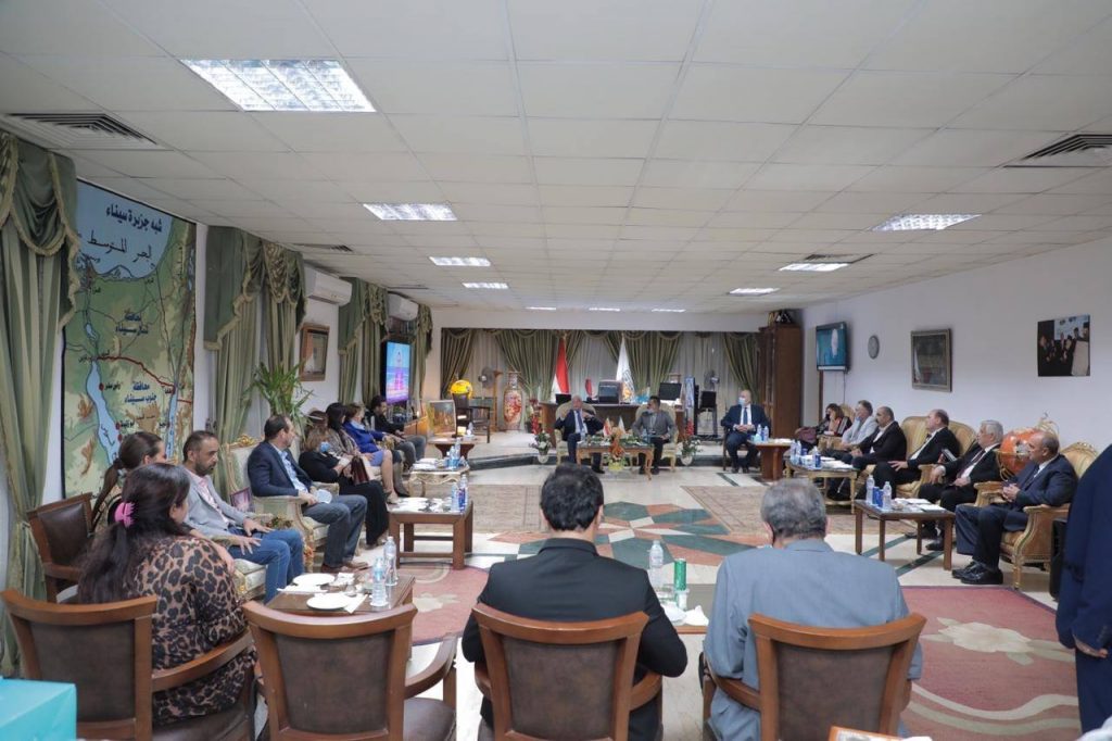 جاء ذلك خلال استقبال فودة مجموعة من الفنانين والإعلاميين والنقاد المشاركين في المهرجان، وعلى رأسهم الفنانة القديرة سميحة ايوب، ولقاء سويدان، مروة عبد المنعم، منة تيسير، مارديني ديمتريفتش، محسن منصور، على عليان، جبار جودى، نضال الشافعي، ضياء دندش، منتور زمبراج، امل الدباس، ايمن الشيوى، مازن الغرباوي، بمكتبه بمدينة شرم الشيخ.