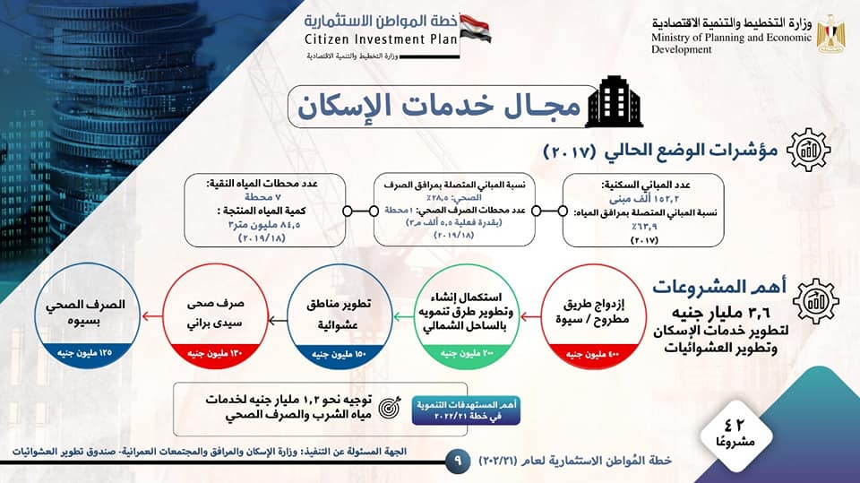 وأوضح التقرير أن أهم المستهدفات التنموية بقطاع الإسكان وتطوير العشوائيات بمحافظة مطروح في خطة 21/2022 تتمثل في توجيه نحو 1,2 مليار جنيه لخدمات مياه الشرب والصرف الصحي، وتتمثل أهم المشروعات التنموية في القطاع والبالغ عددها 42 مشروع في تطوير مناطق عشوائية، مشروعات صرف صحي، وتتمثل أهم مشروعات قطاع التعليم العالي والبحث العلمي في إنشاء جامعة العلمين الدولية، إنشاء وتجهيز مبنى الامتحانات الإلكترونية بحرم جامعة مطروح، إلى جانب استكمال تنفيذ أعمال الشبكات والمرافق بحرم جامعة مطروح.