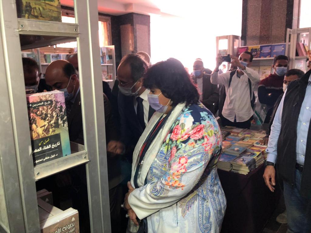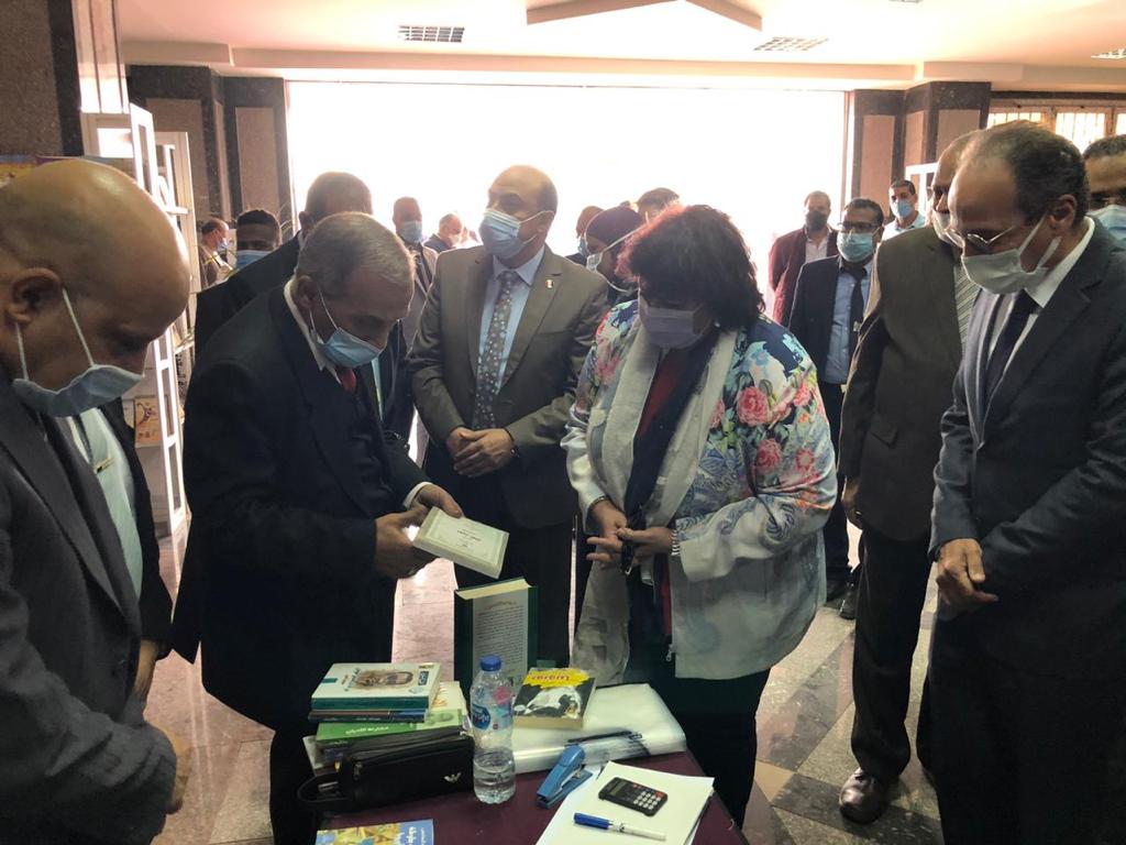 اكدت وزيرة الثقافة ان اسوان احد البقاع المميزة على ارض مصر، وقالت ان التوسع الذي تنتهجه وزارة الثقافة في إقامة معارض الكتاب بكافة المحافظات يهدف الى الوصول بالمنتج الثقافي بشتى مجالاته لجميع أطياف المجتمع وخاصة طلاب الجامعات بما يحقق زيادة الحصيلة المعرفية والادراك اللازم لبناء الشخصية وتحقيق العدالة الثقافية بين ابناء الوطن، وأوضحت أن المعرض ياتى فى اطار التعاون الدائم والمستمر بين وزارتى الثقافة والتعليم العالى مشيره انه الأول بمشاركة دور النشر الخاصة وذلك ضمن خطوات دعم صناعة النشر والكتاب، كما اشادت بالانشاءات الجامعية الجديدة والتى تضم مسرحا للمساهمة فى تخريج جيل يدرك اهمية الابداع فى استكمال مسيرة التنمية، وتابعت انه تم تخصيص قسم لاصدارات مكتبة الاسرة وكنوز هيئة الكتاب التى تحددت اسعارها طبقا لسنة طباعتها وتبدا من جنيه واحد تيسيرا على الطلاب ورواد المعرض.