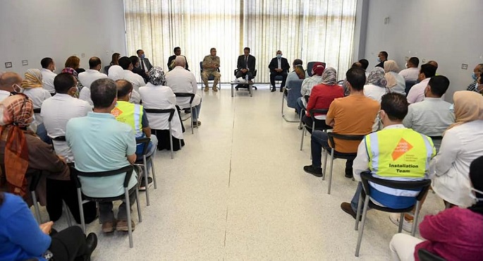 كما حثهم على الاستمرار بالعمل بنفس روح الحماس والاخلاص والتفاني للانتهاء من هذا الصرح الضخم و الذي يعد واحد من أكبر المشروعات الثقافية على مستوى العالم.