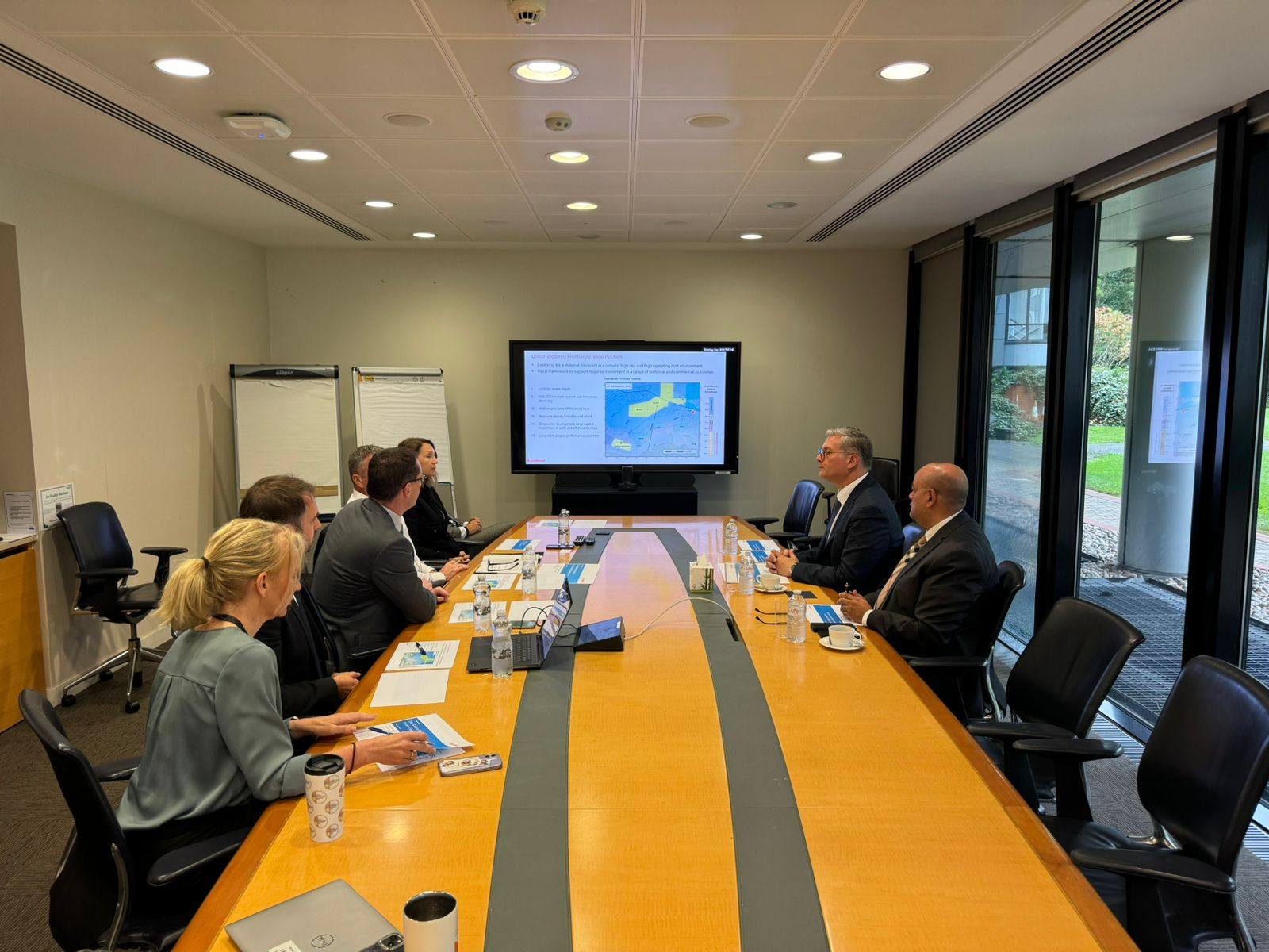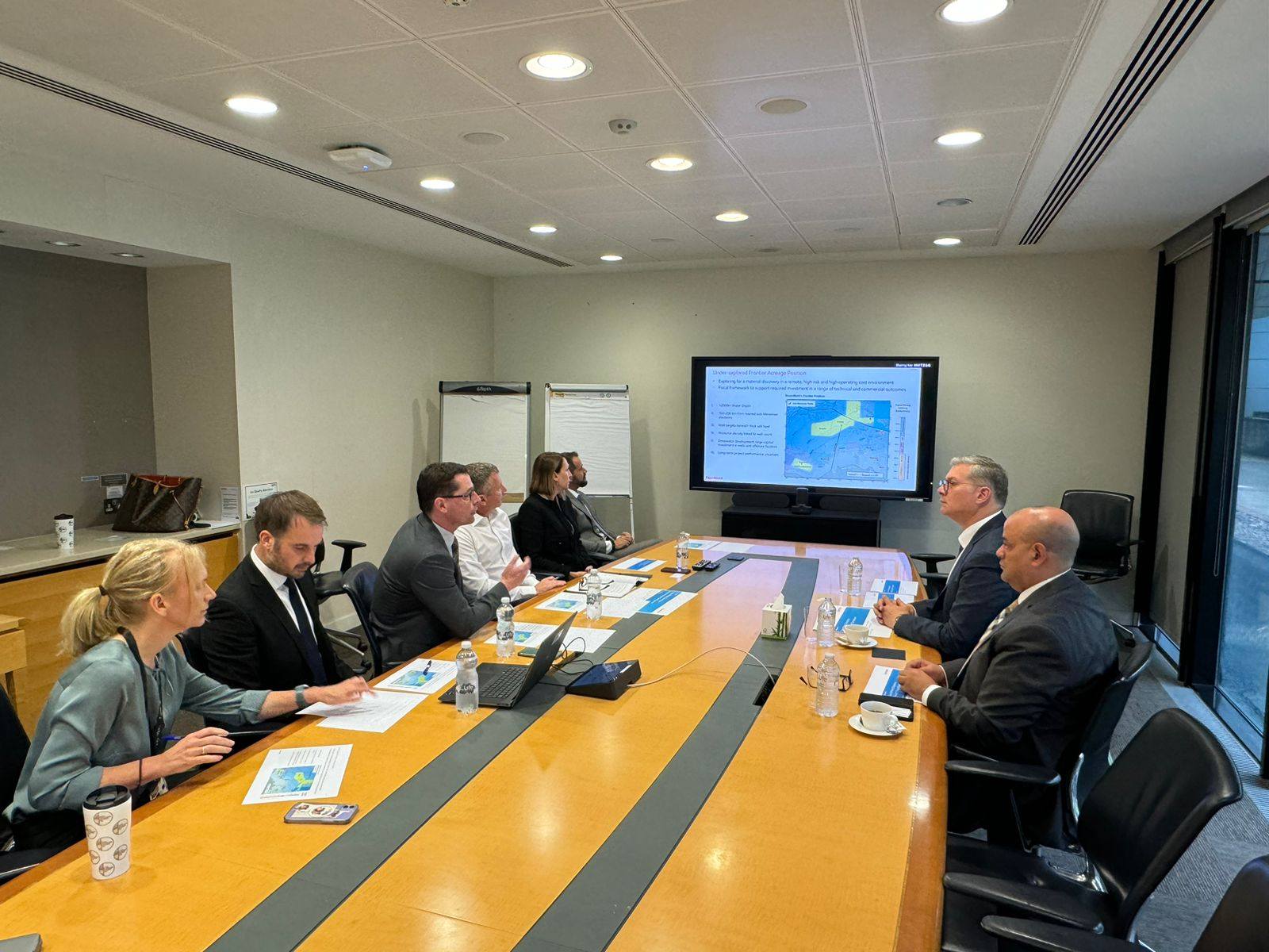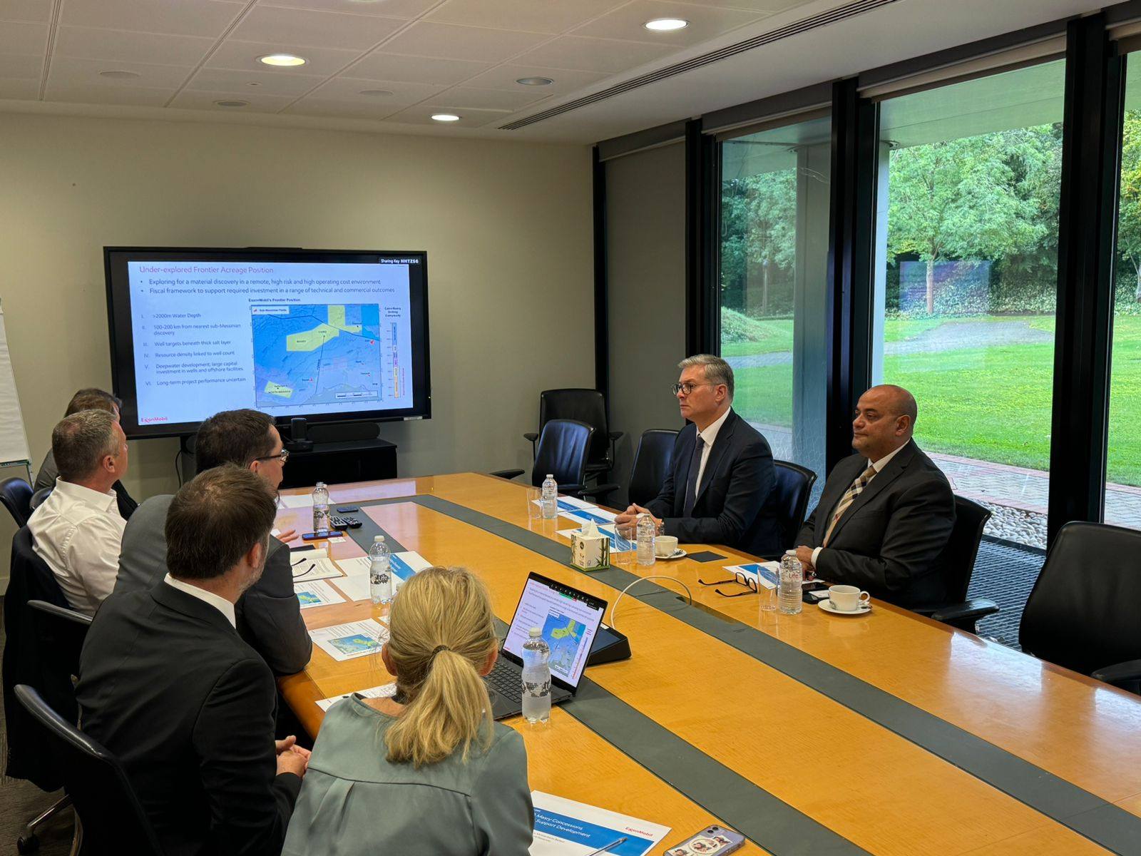 في اطار زيارته الحالية للمملكة المتحدة، عقد المهندس كريم بدوي، وزير البترول والثروة المعدنية، جلسة مباحثات مع جون أرديل نائب رئيس شركة إكسون موبيل العالمية للإستكشاف في مقر الشركة بحضور المهندس معتز عاطف وكيل الوزارة للمكتب الفني والمتحدث الرسمي للوزارة .