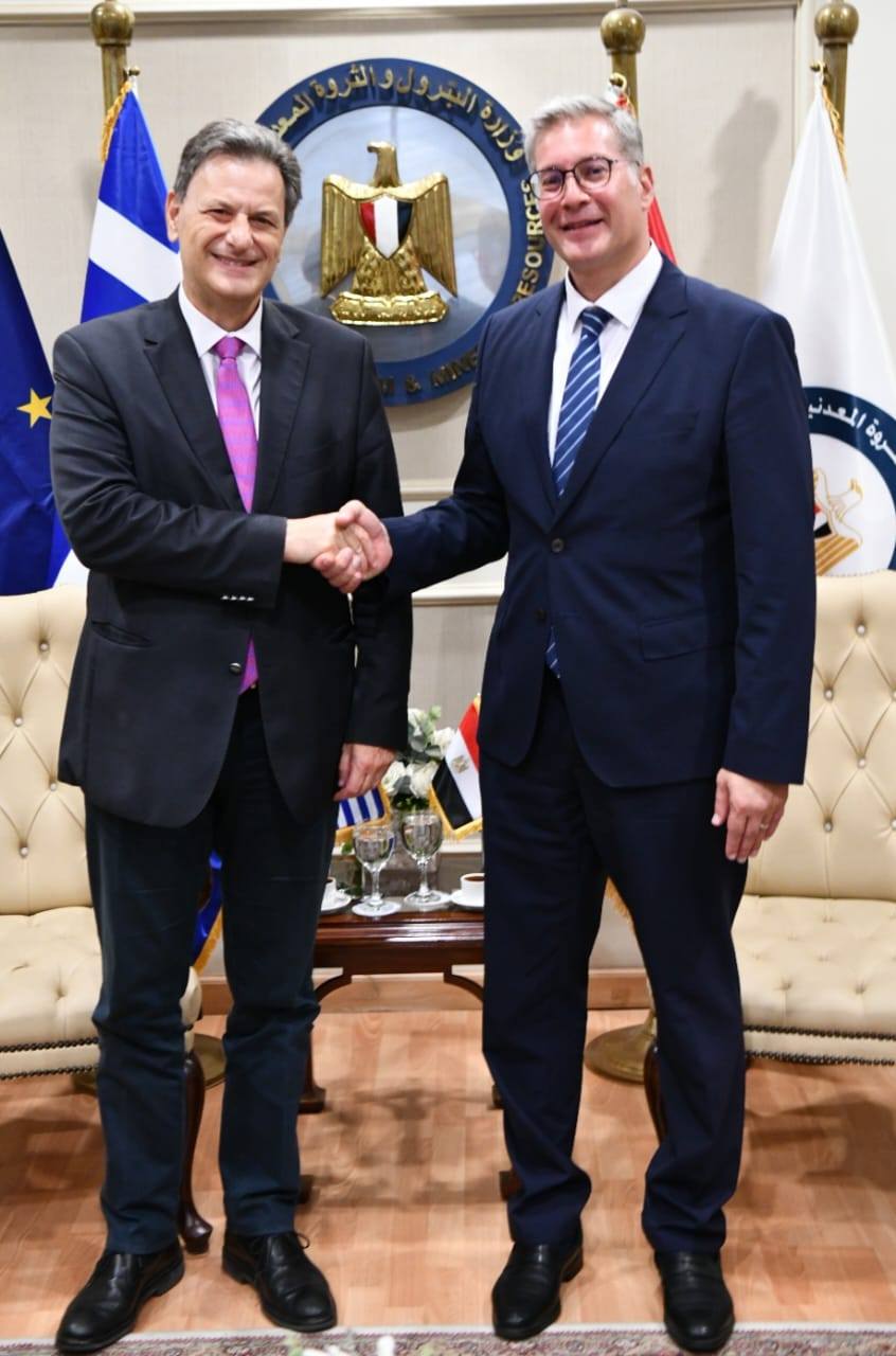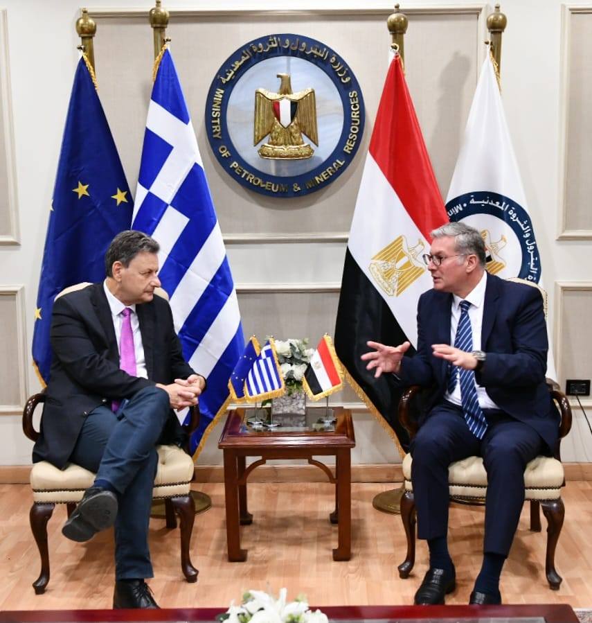 وزير البترول يبحث مع وزير البيئة والطاقة اليوناني الشراكة في مجال التقاط تخزين الكربون الأخضر