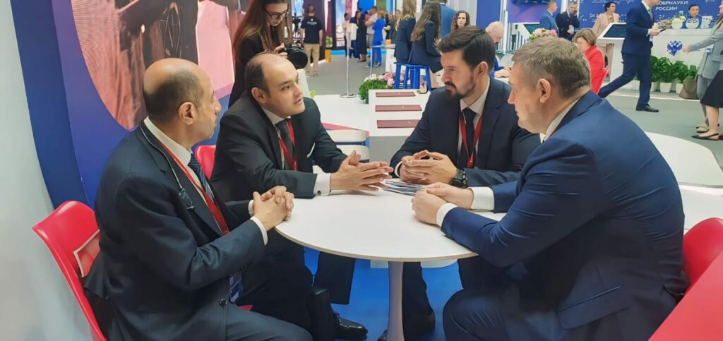 التقى أحمد سمير، أندريه سليبنيف وزير تجارة الاتحاد الأوراسي حيث تناول اللقاء آخر تطورات مفاوضات اتفاق التجارة الحرة بين مصر والاتحاد والذي يضم دول روسيا وبلاروسيا وكازاخستان وأرمينيا وقيرغيزستان، وذلك في اطار مشاركته بفعاليات الدورة الـ27 من منتدى سان بطرسبرج الاقتصادي الدولي والذي يُعقد خلال الفترة من 5-8 يونيو الجاري.
