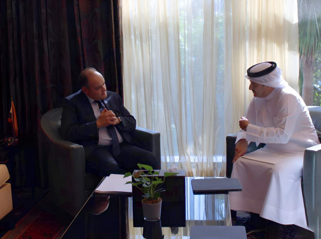 كما التقي الشيخ عبدالله بن خليفة أل خليفة الرئيس التنفيذي لشركة ممتلكات البحرين القابضة، حيث تناول اللقاء اهم نتائج تفعيل مذكرة التفاهم التي وقعتها الشركة مع صندوق مصر السيادي لتعزيز الاستثمار والتنمية في القطاعات الاستراتيجية والحيوية في مصر.