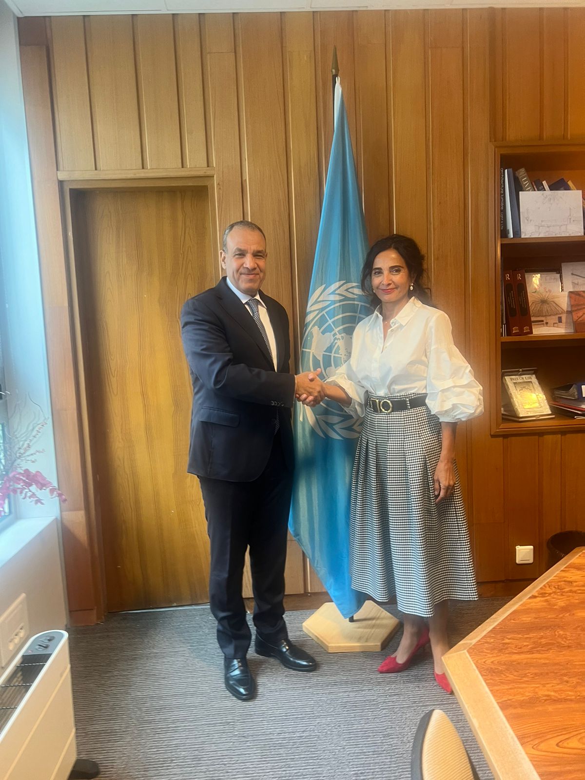 وعلى صعيد آخر، التقى وزير الخارجية، اليوم، مع المندوبة الدائمة للصين لدى منظمة اليونسكو الرئيس الحالي لمجموعة الدول الآسيوية والمحيط الهادي، وذلك على هامش أعمال المجلس التنفيذي للمنظمة في باريس.