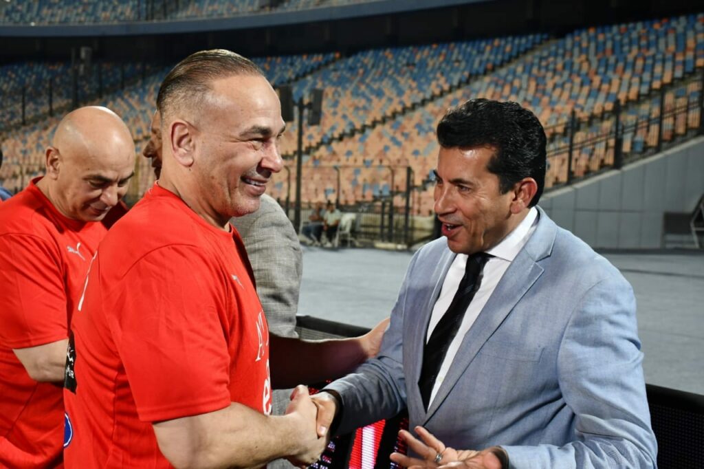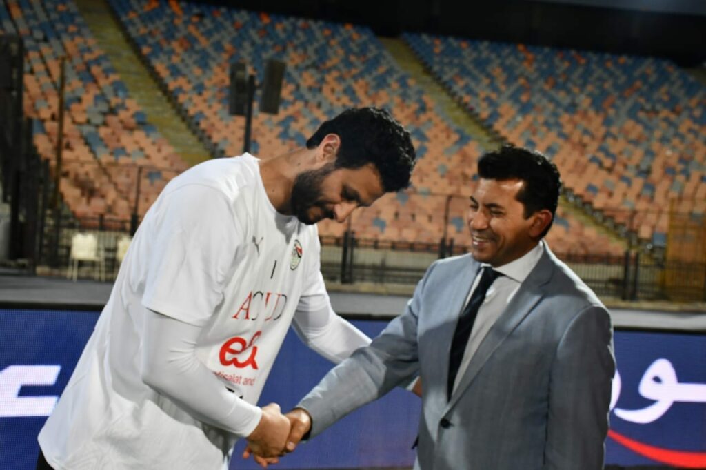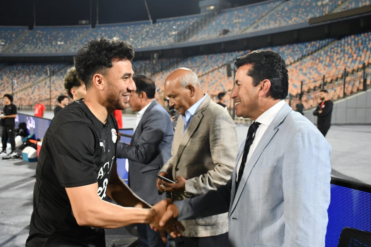 واستكمل صبحي: “تعالوا شجعوا منتخب مصر، فالمباريات ليست بالسهلة، ونتمني امتلاء مدرجات استاد القاهرة، كل التوفيق لكل اللاعبين مع الروح المعنوية العالية التي نراها اليوم”، لافتاً إلي متابعة الوزارة كافة استعدادات المنتخب الأوليمبي.