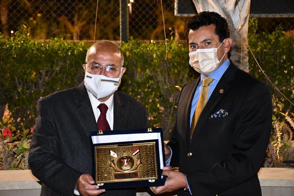 وزير الرياضة يكرم رؤساء الاتحادات الدولية والأوروبية والإفريقية للدراجات