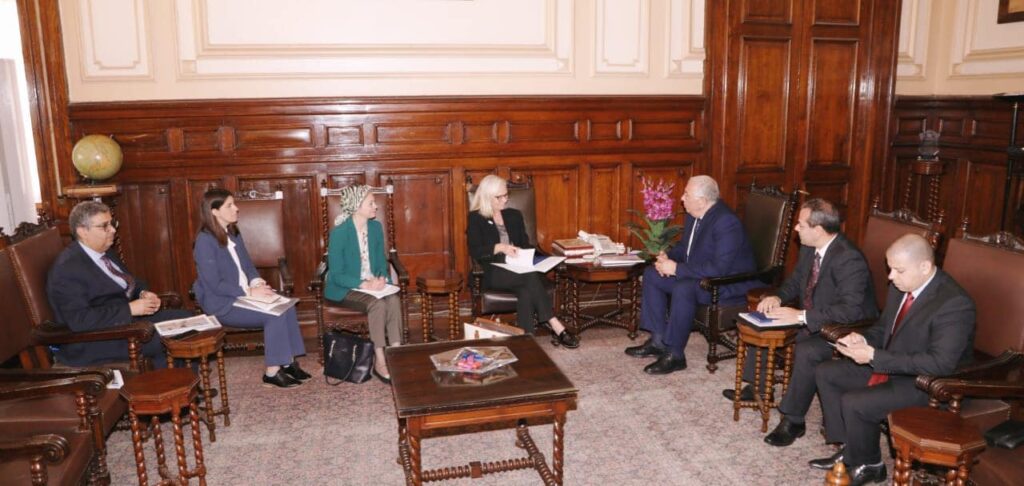 وقد رحب القصير بالسيدة “ريد” والوفد المرافق لها حيث تناول اللقاء التحديات والازمات المتلاحقة التي تواجه العالم والتي بدأت بجائحة كورونا مرورا بمشكلة التغيرات المناخية ثم الأزمة الروسية – الاوكرانية، حيث اتفق الجانبان علي التداعيات والآثار السلبية لتلك المشكلات علي أسعار المواد الغذائية واضطراب سلاسل القيمة.