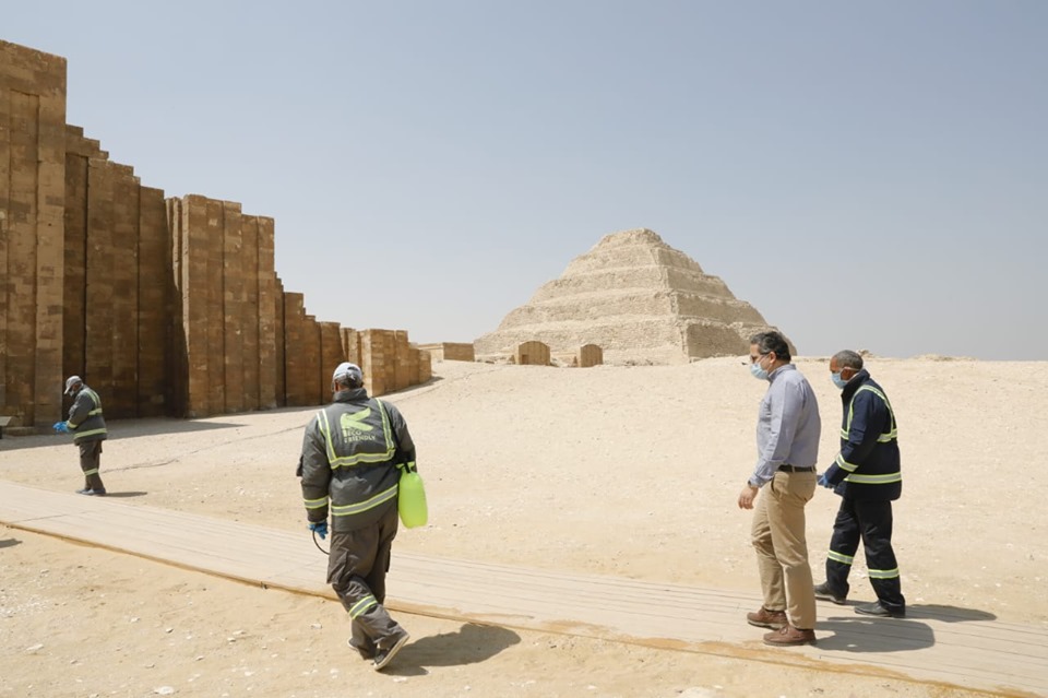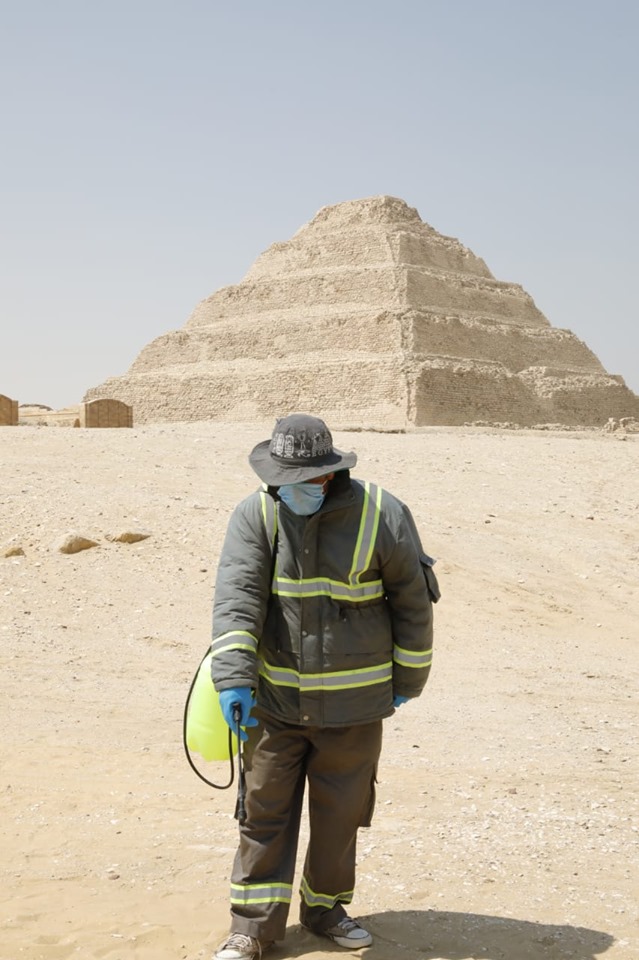 جدير بالذكر أن أعمال التعقيم في منطقة سقارة الأثرية مستمرة منذ إغلاقها وتضمن تعقيم مركز الزوار وأجهزة X-Ray ، وشباك التذاكر الخاص بالمنطقة الأثرية، ودورات المياه، و مدخل المنطقة، والطريق المؤدية لها، بالإضافة إلى تعقيم الممشي الخشبي أمام الهرم والمسطحات التي من الممكن أن يتكأ عليها الجمهور وأماكن جلوس الزائرين وغيرها من الأماكن الملامسة للإنسان.