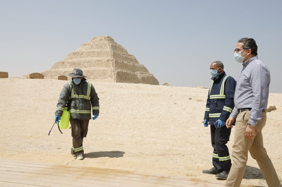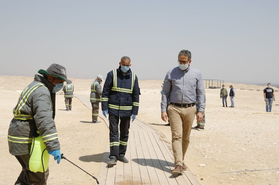 جاء ذلك خلال تفقد الوزير لمنطقة آثار سقارة لمتابعة أعمال التعقيم والتطهير بها ضمن الإجراءات الاحترازية التي تتخذها الدولة للوقاية من تداعيات فيروس “كورونا المستجد”.