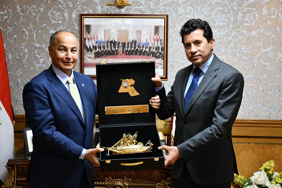 التقي الدكتور أشرف صبحي وزير الشباب والرياضة، الدكتور حسين المسلم رئيس الاتحاد الدولي للسباحة وأمين سر اللجنة الأولمبية الكويتية والوفد المرافق له، في أول زيارة رسمية لمصر عقب فوزه بالانتخابات ، بحضور الدكتور حسن مصطفي رئيس الاتحاد الدولي لكرة اليد، المهندس هشام حطب رئيس اللجنة الأوليمبية المصرية، والمهندس ياسر إدريس رئيس الاتحاد المصري للسباحة، ولفيف من قيادات وزارة الشباب والرياضة.