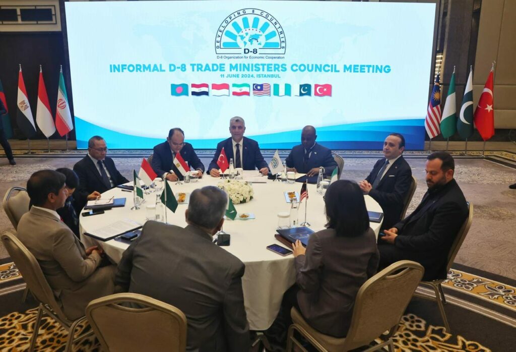 ترأس المهندس أحمد سمير، وزير التجارة والصناعة الاجتماع غير الرسمي لوزراء تجارة مجموعة دول الثماني النامية الإسلامية D8، الذي عُقد بمدينة إسطنبول التركية لمناقشة مجموعة موضوعات تشمل التصديق على استراتيجية تسهيل التجارة وآلية تسوية المنازعات وغيرها من القرارات الخاصة بزيادة التعاون التجاري بين الدول أعضاء المجموعة، وذلك بحضور الدكتور عمر بولات، وزير التجارة التركي، والسيد إسياكا عبد القادر إمام، الأمين العام لمجموعة الدول الثماني النامية الإسلامية، بالإضافة إلى رؤساء وفود الدول الأعضاء، والسفير عمرو الحمامي، سفير مصر في أنقرة ورئيس الوفد المصري، والوزير مفوض تجاري علي باشا، رئيس المكتب التجاري المصري في إسطنبول.