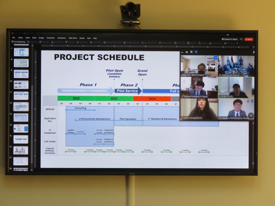 وأوضح الجانب الكوري حرصه على الدفع قدمًا بمشروع تطبيق المنظومة الإلكترونية للتعاقدات الحكومية، وهو ما يؤكد اهتمام الحكومة الكورية بتطوير مختلف أوجه العلاقات مع مصر، التي تم اختيارها شريكًا استراتيجيًا لكوريا، وأشار المسئولون الكوريون إلى أنهم سيسعون إلى نقل خبراتهم في هذا المشروع إلى الجانب المصرى، وكذلك الاستفادة من تجارب تطبيق هذه المنظومة في كل من الأردن، وتونس، والعراق، كما سيسعون لإتمام المشروع في أسرع وقت استجابة للمطلب المصرى.