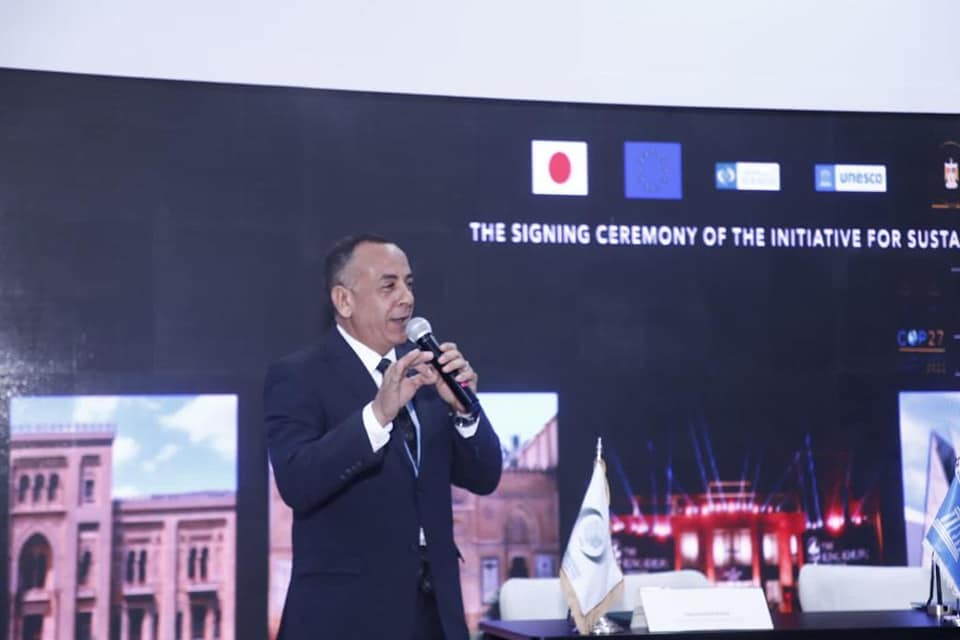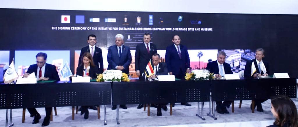 شهد، اليوم الجمعة، أحمد عيسى وزير السياحة والآثار، والمهندس أحمد سمير وزير التجارة والصناعة، والدكتور أيمن عاشور وزير التعليم العالي والبحث العلمي، مراسم توقيع مذكرة التفاهم الإطارية لمشروع تحويل المتاحف ومواقع التراث العالمي المصري إلى الأخضر واستخدام الطاقة الشمسية، وذلك التوقيع بين المجلس الأعلى للآثار، وبرنامج الأمم المتحدة الإنمائي UNDP، ومركز تحديث الصناعة IMC (مشروع نظم الخلايا الشمسية الصغيرة)، ومنظمة الأمم المتحدة للتربية والعلم والثقافة (اليونسكو)، ومنظمة العالم الإسلامي للتربية والعلوم والثقافة (الإيسيسكو).