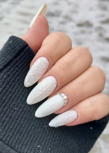 اللون الأبيض اللامع يجسد أجواء الشتاء والثلوج المتساقطة، ويبرز على البشرة بشكل رائع، يمكن تعزيز هذا اللون بلمسة نهائية معدنية خفيفة للحصول على تأثير جليدي ساحر، استخدمي طلاء للحصول على لمعان فريد، أو اختاري اللون الأبيض اللؤلؤي مع لمسات زرقاء خفيفة للحصول على باديكير مميز وأنيق.