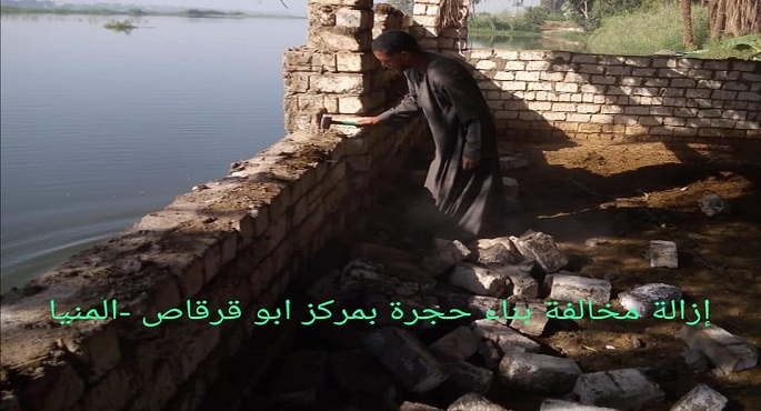 وتم رصد حالة تعدى ببناء سور مخالف بمركز أبو قرقاص بمحافظة المنيا ، وتم إزالة التعدى بمعرفة المخالف ، كما تم رصد عدد ٢ مخالفة ردم بنهر النيل بناحية العوامية بمركز ساقلتة بسوهاج بمساحة ٤٠٠ متر مربع ، وتم على الفور وبالتنسيق مع الوحدة المحلية لمركز ساقلته إزالة هذه التعديات وإتخاذ الإجراءات القانونية اللازمة.