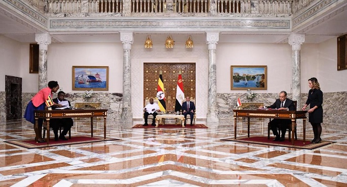 شهد الرئيس عبدالفتاح السيسي ونظيره الأوغندي يوريي موسيفيني اليوم / الثلاثاء/ بقصر الاتحادية التوقيع على 5 مذكرات تفاهم للتعاون بين البلدين.