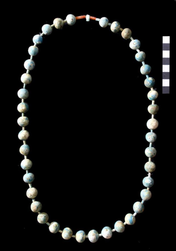 وأوضح الدكتور هشام الليثي رئيس قطاع حفظ وتسجيل الآثار المصرية بالمجلس الأعلى للآثار، إنه من أبرز المكتشفات الأثرية قلادة فريدة مكونة من 30 خرزة أسطوانية الشكل من حجر الأماتيست مع خرزتين أسطوانيتين من العقيق يحيطان بتميمة على شكل رأس فرس النهر، بالإضافة إلى مجموعة من القلادات والأساور والسلاسل والخواتم والأحزمة المصنوعة من العقيق الأحمر والخزف المطعم باللون الأزرق والأخضر وحجر الفاينس المطلي كما زينت بتمائم على شكل رؤوس أفراس النهر والصقور وتمائم علي هيئة رأس ثعبان وغيرها وجميعها في حالة جيدة من الحفظ.