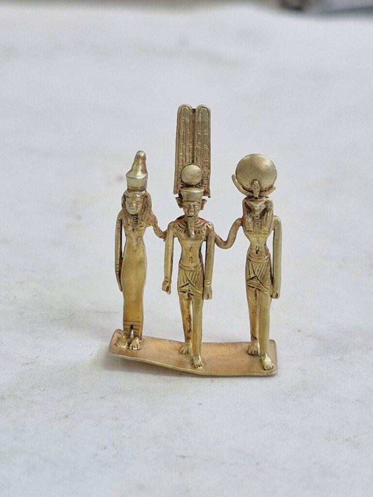 وبدوره، قال محمد عبد البديع رئيس قطاع الآثار المصرية، إن مجموعة الحلي تضم خواتم مصنوعة من الذهب والمعادن، وتمائم ذهبية صغيرة من بينها تمثال ثلاثي للآلهة المصرية القديمة آمون وموت وخونسو، بالإضافة إلى بروش معدني، وتمائم تمثل الآلهة في أشكال حيوانية، وعدد كبير من الخرز بعضها مطلي بالذهب.