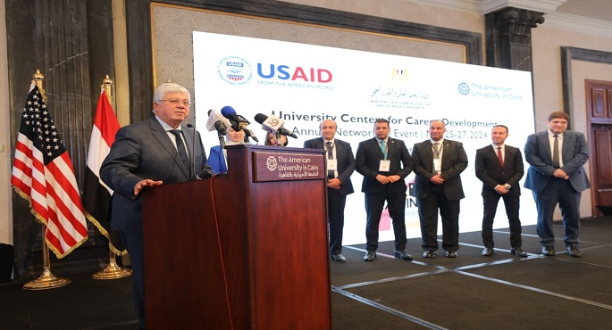 وأضاف الوزير أن الوزارة اتخذت خطوات جادة وسريعة خلال عام 2024 لبناء منظومة التدريب والتأهيل والربط بسوق العمل، وذلك في ضوء الإستراتيجية الوطنية للتعليم العالي والبحث العلمي 2030، ومن بين هذه الخطوات إنشاء 37 مركزًا جامعيًّا للتطوير المهني في 29 جامعة كمرحلة أولى، وأن المرحلة الثانية ستشهد توسيع نطاق المشروع ليشمل 46 مركزًا بحلول عام 2026؛ بهدف تغطية كافة الجامعات، وذلك في ضوء بروتوكول التعاون المبرم مع الوكالة الأمريكية للتنمية الدولية والجامعة الأمريكية بالقاهرة، الذي يتم تنفيذه بموازنة قدرها 63 مليون دولار.