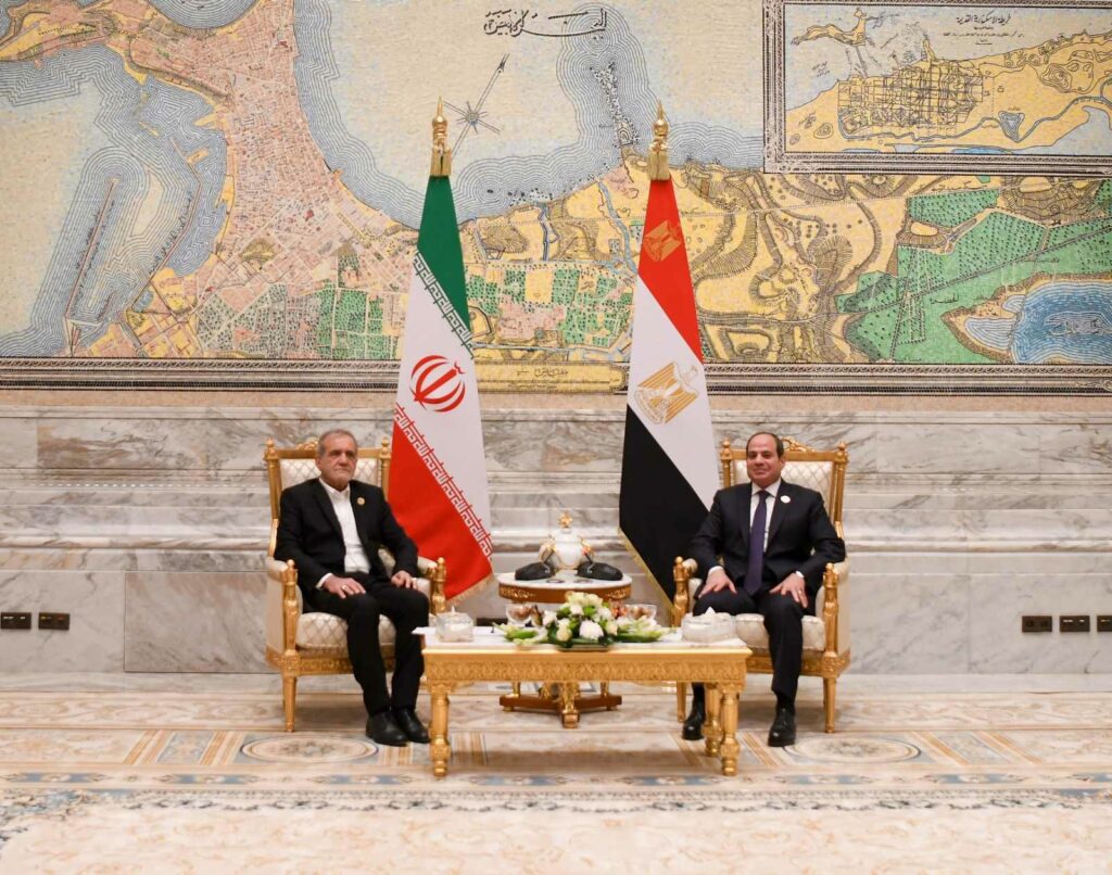 التقى الرئيس عبد الفتاح السيسي، اليوم الخميس، الرئيس “مسعود بزشكيان” رئيس الجمهورية الإسلامية الإيرانية، وذلك على هامش قمة الدول الثماني النامية للتعاون الاقتصادي، التي تعقد بالعاصمة الإدارية الجديدة.