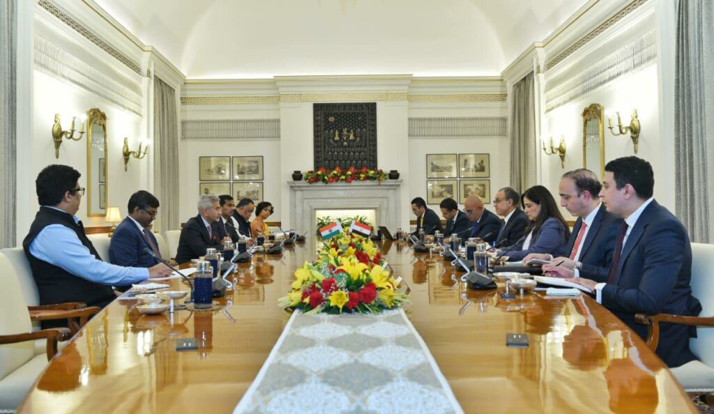 عقدت الجولة الاولى من الحوار الاستراتيجي بين مصر والهند يوم الخميس ١٦ أكتوبر ٢٠٢٥ في نيودلهي، وذلك برئاسة د. بدر عبد العاطي وزير الخارجية والهجرة وشئون المصريين بالخارج و د. سوبرامانيام جايشانكار وزير الشئون الخارجية الهندي.