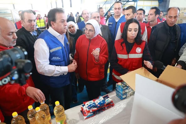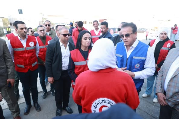 تفقد الدكتور خالد عبدالغفار نائب رئيس مجلس الوزراء وزير الصحة والسكان، والدكتورة مايا مرسي وزيرة التضامن الاجتماعي نائب رئيس مجلس إدارة الهلال الأحمر المصري، واللواء عاصم سعدون نائب محافظ شمال سيناء، المراكز اللوجيستية للهلال الأحمر المصري بمدينة العريش.