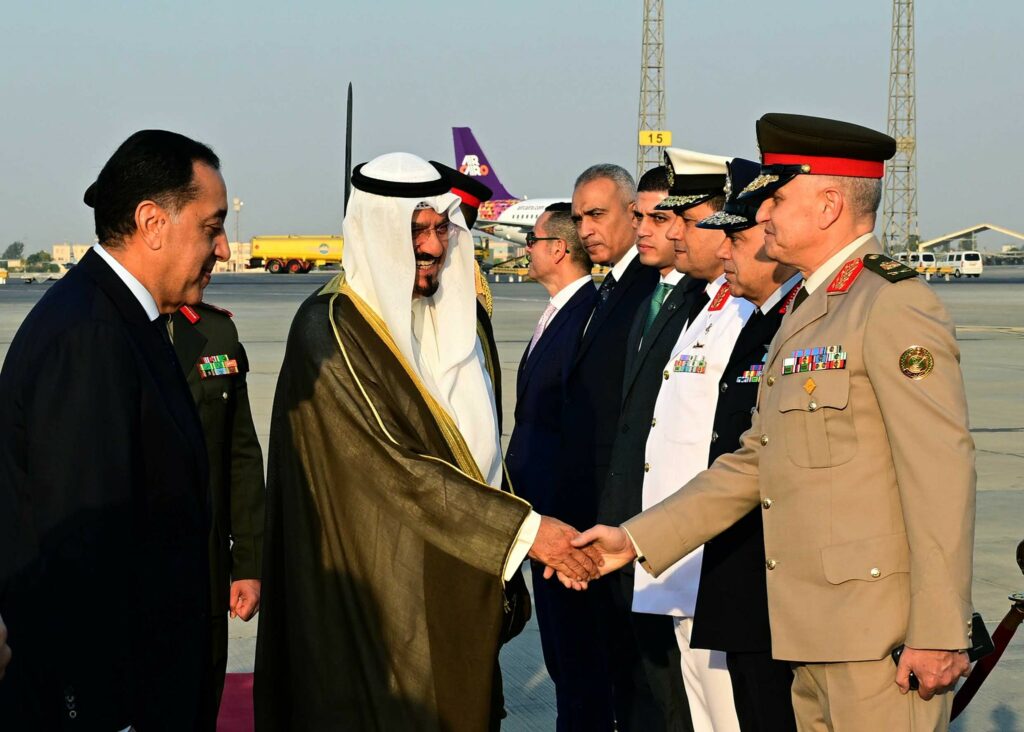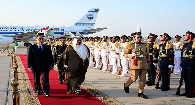 ولدى وصوله مطار القاهرة الدولي، أُقيمت مراسم استقبال رسمية لسمو الشيخ أحمد عبد الله الأحمد الصباح، رئيس مجلس الوزراء الكويت والوفد المرافق له، وشهدت مراسم الاستقبال عزف السلاميْن الوطنيين لجمهورية مصر العربية ودولة الكويت الشقيقة، أعقبه استعراض حرس الشرف، وذلك بحضور المهندس حسن الخطيب، وزير الاستثمار والتجارة الخارجية، والسفير غانم صقر على شاهين الغانم، سفير دولة الكويت لدى مصر.