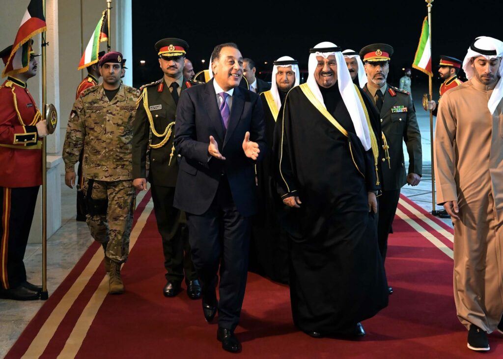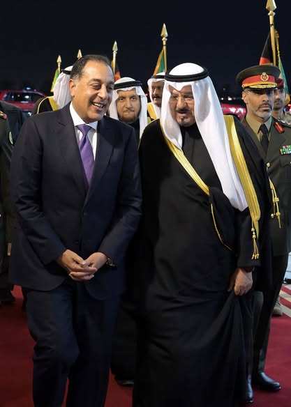 واستقبل الدكتور مصطفى مدبولي، بمطار الكويت الدولي، الشيخ أحمد عبدالله الأحمد الصباح، رئيس وزراء دولة الكويت، يرافقه كل من شريدة عبدالله سعد المعوشرجي، نائب رئيس مجلس الوزراء الكويتي، وزير الدولة لشئون مجلس الوزراء، رئيس بعثة الشرف، و عبدالعزيز دخيل الدخيل، رئيس ديوان رئيس مجلس الوزراء الكويتي، و عبدالله علي اليحيا، وزير الخارجية، وبحضور السفير المصرى لدى الكويت، أسامة شلتوت.